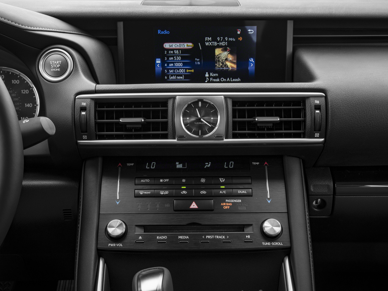 - Radio: Lexus Display Audio -inc: 293-watts, AM/FM/CD/MP3/WMA, HD Radio (complimentary traffic and weather), radio data system (RDS), 7" VGA screen, 10 speakers, digital signal processing w/automatic sound levelizer (ASL), integrated SiriusXM satellite radio receiver (complimentary 90-day trial subscription), iTunes tagging, dual USB/iPod audio input plugs, streaming audio via Bluetooth® 3.0, voice recognition and Siri Eyes Free Mode