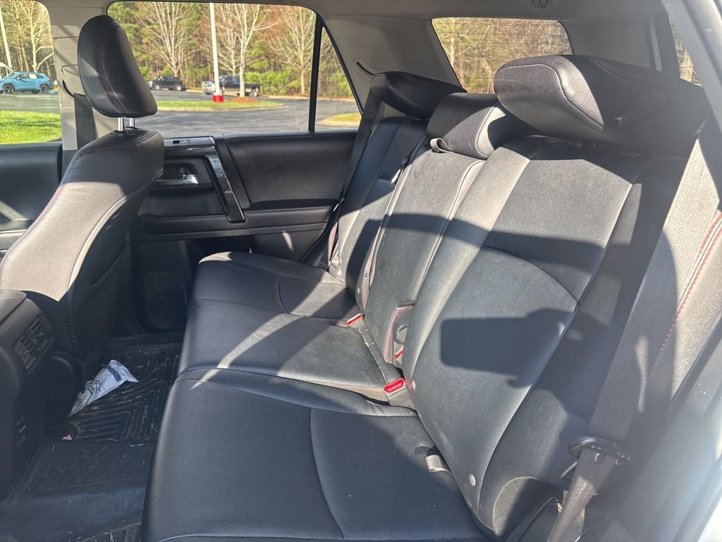 CARFAX One-Owner. Clean CARFAX. 4WD, Black w/Softex Synthetic Leather Seat Trim, ABS brakes, Alloy wheels, Body Color Heated Mirrors, Compass, Electronic Stability Control, Heated door mirrors, Heated Front Bucket Seats, Heated front seats, Illuminated entry, Low tire pressure warning, Remote keyless entry, Traction control. Check out all these great options 4WD, Black w/Softex Synthetic Leather Seat Trim, ABS brakes, Alloy wheels, Body Color Heated Mirrors, Compass, Electronic Stability Control, Heated door mirrors, Heated Front Bucket Seats, Heated front seats, Illuminated entry, Low tire pressure warning, Remote keyless entry, Traction control, 3.727 Axle Ratio, 4-Wheel Disc Brakes, 8 Speakers, Air Conditioning, AM/FM radio: SiriusXM, Anti-whiplash front head restraints, Auto-Dimming Rear-View Mirror, Auto-dimming Rear-View mirror, Black Roof Rails, Brake assist, Bumpers: body-color, CD player, Driver door bin, Driver vanity mirror, Dual front impact airbags, Dual front side impact airbags, Emergency communication system: Safety Connect, Exterior Parking Camera Rear, Front anti-roll bar, Front Bucket Seats, Front Center Armrest, Front fog lights, Front reading lights, Front wheel independent suspension, Garage Door Opener, Garage door transmitter: HomeLink, Knee airbag, Leather Shift Knob, Occupant sensing airbag, Outside temperature display, Overhead airbag, Overhead console, Panic alarm, Passenger door bin, Passenger vanity mirror, Power door mirrors, Power driver seat, Power passenger seat, Power steering, Power windows, Radio: Entune Premium Audio w/Navigation, Rear anti-roll bar, Rear seat center armrest, Rear window defroster, Rear window wiper, Roof rack: rails only, Security system, Softex Synthetic Leather Seat Trim, Speed control, Speed-sensing steering, Split folding rear seat, Spoiler, Steering wheel mounted audio controls, Tachometer, Telescoping steering wheel, Tilt steering wheel, Trip computer, Turn signal indicator mirrors, Variably intermittent wipers, and Wheels: 17 x 7.5 7-Spoke Unique Off-Road AlloyStop by and test drive today. Let us show you how affordable we can make it. Remember, we always give you more for your trade and we will buy your vehicle even if you don't buy one from us. See online @ www.FredAndersonToyota.com or see in person @ Fred Anderson Toyota 9101 Glenwood Ave. Raleigh NC, 27617. Recent Arrival! 2017 Toyota 4Runner TRD Off-Road Premium 4WD Super White 5-Speed Automatic with Overdrive