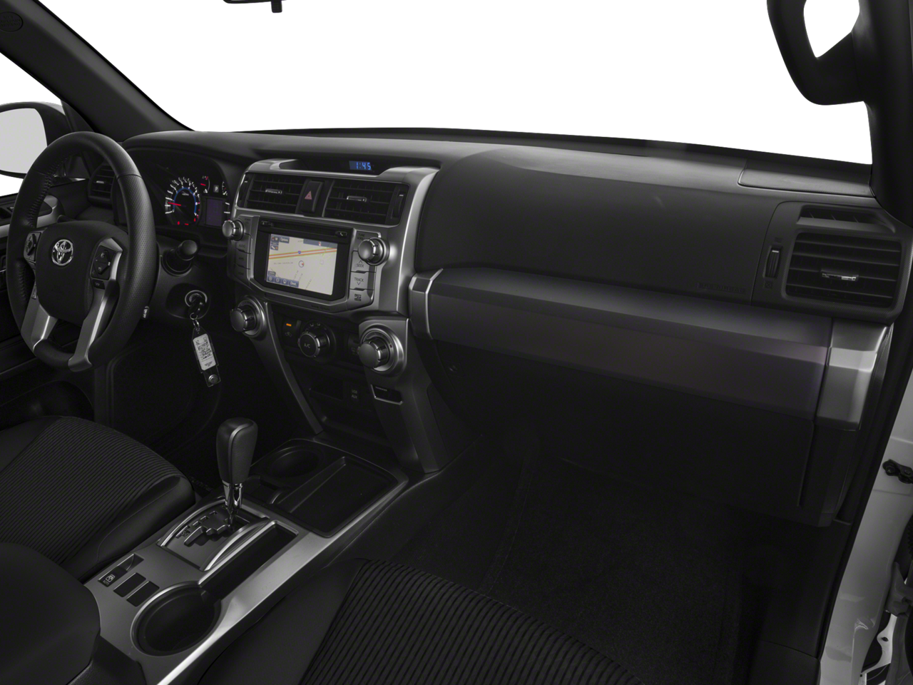 Check out all these great options SR5 Premium Package w/Softex (Auto-Dimming Rear-View Mirror, Body Color Heated Mirrors, and Garage Door Opener), 17 x 7.0 6-Spoke Alloy Wheels, ABS brakes, Alloy wheels, Compass, Electronic Stability Control, Heated door mirrors, Heated Front Bucket Seats, Heated front seats, Illuminated entry, Low tire pressure warning, Remote keyless entry, Traction control, 3.727 Axle Ratio, 4-Wheel Disc Brakes, 8 Speakers, Air Conditioning, AM/FM radio: SiriusXM, Anti-whiplash front head restraints, Auto-dimming Rear-View mirror, Brake assist, Bumpers: body-color, CD player, Driver door bin, Driver vanity mirror, Dual front impact airbags, Dual front side impact airbags, Emergency communication system: Safety Connect, Exterior Parking Camera Rear, Front anti-roll bar, Front Bucket Seats, Front Center Armrest, Front fog lights, Front reading lights, Front wheel independent suspension, Garage door transmitter: HomeLink, Knee airbag, Leather Shift Knob, Leather steering wheel, Occupant sensing airbag, Outside temperature display, Overhead airbag, Overhead console, Panic alarm, Passenger door bin, Passenger vanity mirror, Power door mirrors, Power driver seat, Power passenger seat, Power steering, Power windows, Radio: Entune Premium Audio w/Navigation, Rear anti-roll bar, Rear seat center armrest, Rear window defroster, Rear window wiper, Roof rack: rails only, Security system, Softex Synthetic Leather Seat Trim, Speed control, Speed-sensing steering, Split folding rear seat, Spoiler, Steering wheel mounted audio controls, Tachometer, Telescoping steering wheel, Tilt steering wheel, Trip computer, Turn signal indicator mirrors, and Variably intermittent wipers *** AVAILABLE AT FRED ANDERSON NISSAN OF RALEIGH. CALL US NOW 919-787-0254*** Toyota 4Runner Midnight Black Metallic SR5 Premium 4WD 5-Speed Automatic with Overdrive 4.0L V6 SMPI DOHC