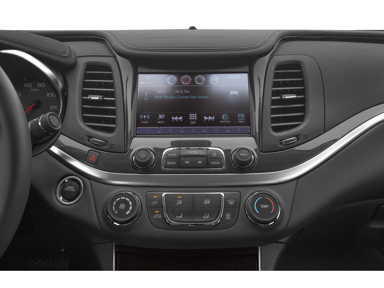- Audio system, Chevrolet Infotainment System with 8" diagonal color touch-screen, AM/FM stereo with seek-and-scan and digital clock, includes Bluetooth® streaming audio for music and select phones; voice-activated technology for radio and phone; featuring Android Auto and Apple CarPlay capability for compatible phone and Shop with the ability to browse, select and install apps to your vehicle. Apps include Pandora, iHeartRadio, The Weather Channel and more