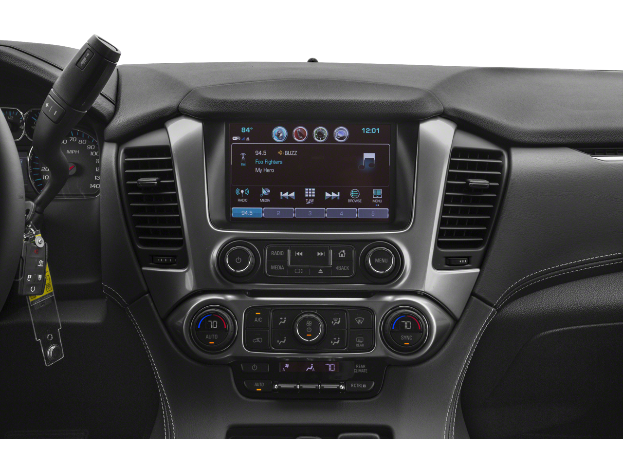 - AUDIO SYSTEM, 8" DIAGONAL COLOR TOUCH-SCREEN NAVIGATION WITH CHEVROLET INFOTAINMENT AM/FM stereo with seek-and-scan and digital clock, includes Bluetooth® streaming audio for music and select phones; voice-activated technology for radio and phone; and Shop with the ability to browse, select and install apps to your vehicle. You can customize your content with audio, weather and more; featuring Apple CarPlay and Android Auto capability for compatible phone; 5 USB ports and 1 auxiliary jack