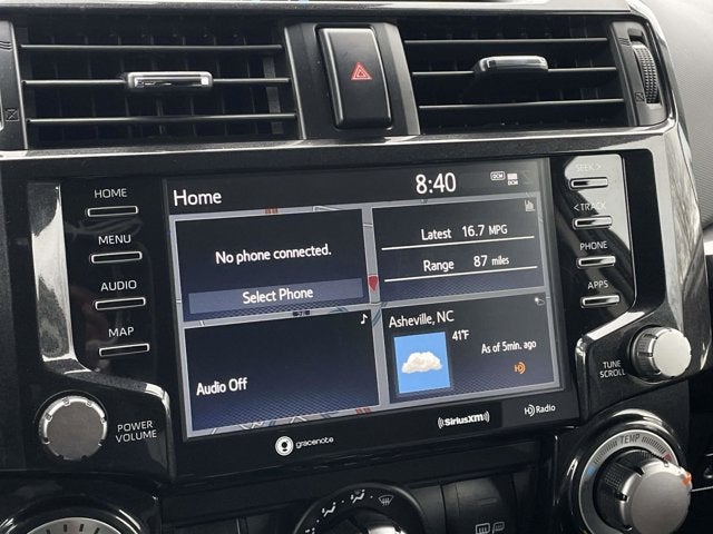 Recent Arrival! Clean CARFAX. 2021 Toyota 4Runner TRD Off-Road Premium Midnight Black Metallic 3.727 Axle Ratio, 4-Wheel Disc Brakes, 8 Speakers, ABS brakes, Air Conditioning, Alloy wheels, AM/FM radio: SiriusXM, Anti-whiplash front head restraints, Apple CarPlay/Android Auto, Auto High-beam Headlights, Auto-dimming Rear-View mirror, Black Roof Rails, Body Color Heated Mirrors, Brake assist, Bumpers: body-color, Compass, Driver door bin, Driver vanity mirror, Dual front impact airbags, Dual front side impact airbags, Electronic Stability Control, Emergency communication system: Safety Connect with 1-year trial, Exterior Parking Camera Rear, Front anti-roll bar, Front Bucket Seats, Front Center Armrest, Front fog lights, Front reading lights, Front wheel independent suspension, Garage Door Opener, Garage door transmitter: HomeLink, Heated door mirrors, Heated Front Bucket Seats, Heated front seats, Illuminated entry, Knee airbag, Leather Shift Knob, Low tire pressure warning, Occupant sensing airbag, Outside temperature display, Overhead airbag, Overhead console, Panic alarm, Passenger door bin, Passenger vanity mirror, Power door mirrors, Power driver seat, Power passenger seat, Power steering, Power windows, Radio: Premium Audio w/Dynamic Navigation, Rear anti-roll bar, Rear seat center armrest, Rear window defroster, Rear window wiper, Remote keyless entry, Roof rack: rails only, Security system, Softex Synthetic Leather Seat Trim, Speed control, Speed-sensing steering, Split folding rear seat, Spoiler, Steering wheel mounted audio controls, Tachometer, Telescoping steering wheel, Tilt steering wheel, Traction control, Trip computer, Turn signal indicator mirrors, Variably intermittent wipers, Wheels: 17x 7.57-Spoke Unique Off-Road Alloy. 4WD 5-Speed Automatic with Overdrive 4.0L V6 SMPI DOHC 16/19 City/Highway MPG Odometer is 27067 miles below market average! Qualifying New or Non-Certified Used Toyotas, Subarus, or Nissans bought here and serviced at a FAMILY STORE receive our FULL ANDERSON FAMILY PLAN at NO COST to YOU! Our full family plan includes: Peace of Mind 3-Day Vehicle Exchange*Lifetime Oil Changes*Service Loaners. Call us at 828-585-5825, visit online at www.AshevilleToyota.com, or visit us at Fred Anderson Toyota of Asheville - 777 Brevard Rd Asheville, NC 28806 to learn more! Our # 1 goal is to help you find the vehicle you love at a price you can afford wrapped in a deal you don't want to walk away from. All prices exclude tax, tag, l