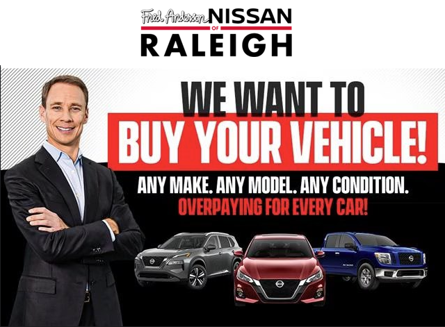 We'll buy your car, even if you don't buy ours! At Fred Anderson Nissan, we price our cars on line aggressively to the market to ensure you that not only are you getting an incredible car but also a great price. Come and see us for a hassle free purchase experience and find out why so many customers have made Fred Anderson Nissan of Raleigh their only destination to purchase a car. Does not include tax, title, license, doc fee or Certification Fee.