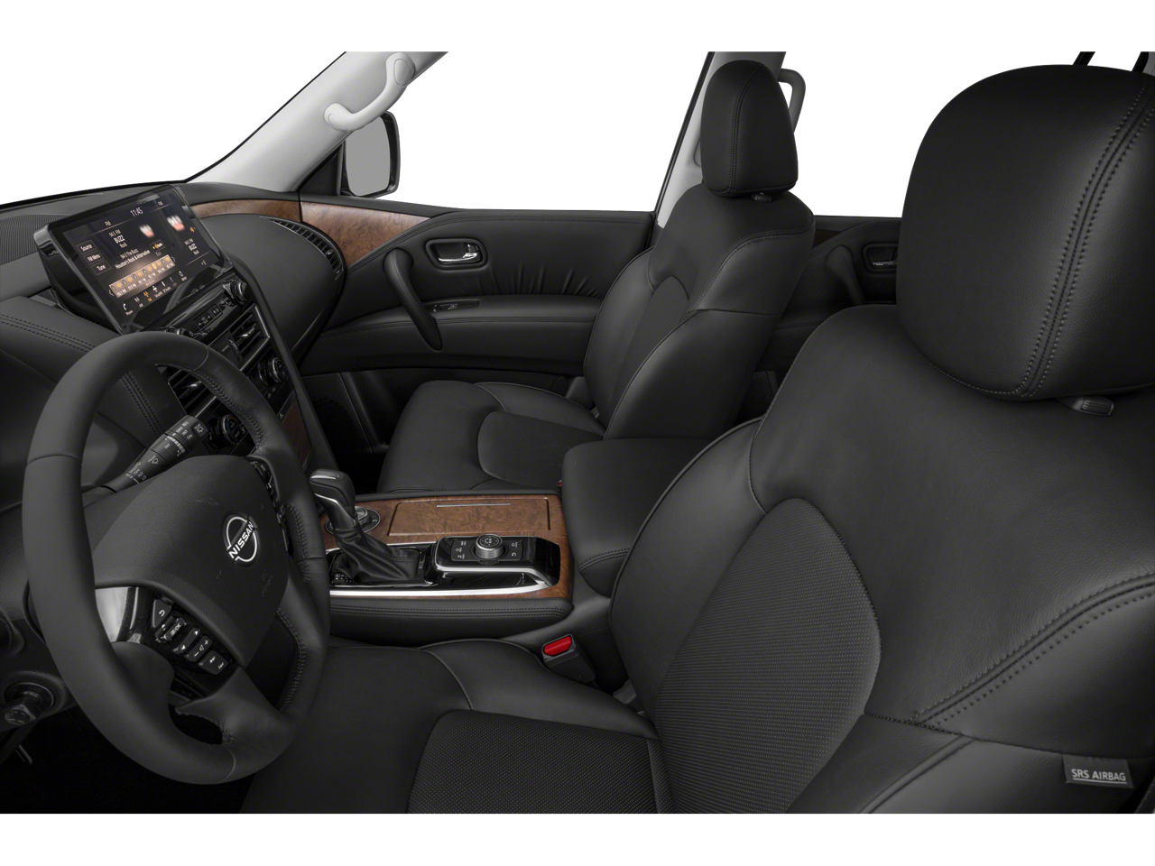 Check out all these great options Captain's Chairs Package (2nd Row Captain's Chairs and 2nd Row Center Console w/Padded Armrest), Cargo Package, 13 Speakers, 2.937 Axle Ratio, 3rd Row Carpeted Floor Mats - Captain Seat, 3rd row seats: split-bench, 4-Wheel Disc Brakes, ABS brakes, Air Conditioning, Alloy wheels, AM/FM radio: SiriusXM, Anti-whiplash front head restraints, Auto High-beam Headlights, Auto tilt-away steering wheel, Auto-dimming door mirrors, Auto-dimming Rear-View mirror, Auto-leveling suspension, Automatic temperature control, Brake assist, Bumpers: body-color, Delay-off headlights, Driver door bin, Driver vanity mirror, Dual front impact airbags, Dual front side impact airbags, Electronic Stability Control, Emergency communication system: NissanConnect Services, Exterior Parking Camera Rear, Four wheel independent suspension, Front anti-roll bar, Front Bucket Seats, Front Center Armrest, Front dual zone A/C, Front fog lights, Front reading lights, Fully automatic headlights, Garage door transmitter: HomeLink, Heated door mirrors, Heated Front Bucket Seats, Heated front seats, Heated steering wheel, HVAC memory, Illuminated entry, Illuminated Kick Plates, Knee airbag, Leather Shift Knob, Leather steering wheel, Leather-Appointed Seat Trim, Low tire pressure warning, Memory seat, Navigation System, Nissan USB Charging Cable Set, Occupant sensing airbag, Outside temperature display, Overhead airbag, Overhead console, Panic alarm, Passenger door bin, Passenger vanity mirror, Power door mirrors, Power driver seat, Power Liftgate, Power moonroof, Power passenger seat, Power steering, Power windows, Radio: NissanConnect w/SiriusXM, Rear air conditioning, Rear anti-roll bar, Rear reading lights, Rear seat center armrest, Rear window defroster, Rear window wiper, Reclining 3rd row seat, Remote keyless entry, Security system, Speed control, Speed-sensing steering, Speed-Sensitive Wipers, Split folding rear seat, Spoiler, Steering wheel memory, Steering wheel mounted audio controls, Tachometer, Telescoping steering wheel, Tilt steering wheel, Traction control, Trip computer, Turn signal indicator mirrors, Variably intermittent wipers, Voltmeter, and Wheels: 20 x 8J Painted Alloy *** AVAILABLE AT FRED ANDERSON NISSAN OF RALEIGH. CALL US NOW 919-787-0254*** Nissan Certified. Armada Aspen White Tricoat SL 4WD 7-Speed Automatic 5.6L V8 DOHC 32V LEV3-ULEV125 400hp