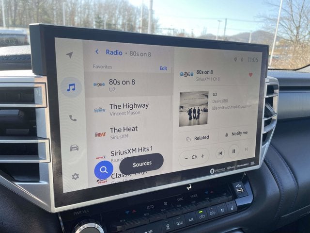 CARFAX One-Owner. 2024 Toyota Tundra Platinum Midnight Black Metallic 10-Way Pwr Adj Heated and Ventilated Front Seats, 12 Speakers, 3.31 Axle Ratio, 4-Wheel Disc Brakes, ABS brakes, Air Conditioning, Alloy wheels, AM/FM radio: SiriusXM, Apple CarPlay/Android Auto, Auto High-beam Headlights, Auto-dimming door mirrors, Auto-dimming Rear-View mirror, Automatic temperature control, Brake assist, Bumpers: body-color, Delay-off headlights, Driver door bin, Driver vanity mirror, Dual front impact airbags, Dual front side impact airbags, Electronic Stability Control, Emergency communication system: Safety Connect (10-year trial), Exterior Parking Camera Rear, Front anti-roll bar, Front Bucket Seats, Front Center Armrest, Front dual zone A/C, Front fog lights, Front reading lights, Front wheel independent suspension, Fully automatic headlights, Garage door transmitter: HomeLink, Heated door mirrors, Heated front seats, Heated rear seats, Heated steering wheel, Illuminated entry, Knee airbag, Leather Seat Trim, Leather Shift Knob, Low tire pressure warning, Memory seat, Navigation System, Occupant sensing airbag, Outside temperature display, Overhead airbag, Overhead console, Panic alarm, Passenger door bin, Passenger vanity mirror, Power door mirrors, Power driver seat, Power moonroof, Power passenger seat, Power steering, Power windows, Radio data system, Radio: Audio Multimedia System, Rain sensing wipers, Rear reading lights, Rear seat center armrest, Rear step bumper, Rear window defroster, Remote keyless entry, Safety Connect, Security system, Speed control, Speed-sensing steering, Split folding rear seat, Steering wheel memory, Steering wheel mounted audio controls, Tachometer, Telescoping steering wheel, Tilt steering wheel, Traction control, Trip computer, Turn signal indicator mirrors, Variably intermittent wipers, Ventilated front seats, Ventilated rear seats, Voltmeter, Wheels: 20Dark Painted Alloy. 4WD 10-Speed Automatic 3.4L V6 17/22 City/Highway MPG Qualifying New or Non-Certified Used Toyotas, Subarus, or Nissans bought here and serviced at a FAMILY STORE receive our FULL ANDERSON FAMILY PLAN at NO COST to YOU! Our full family plan includes: Peace of Mind 3-Day Vehicle Exchange*Lifetime Oil Changes*Service Loaners. Call us at 828-585-5825, visit online at www.AshevilleToyota.com, or visit us at Fred Anderson Toyota of Asheville - 777 Brevard Rd Asheville, NC 28806 to learn more! Our # 1 goal is to help you find the vehicle you love at a price you